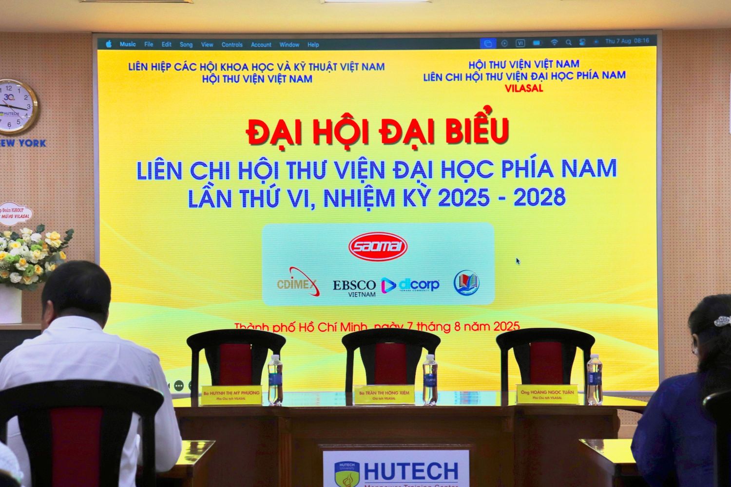 Ngày 07/8/2025 vừa qua, cán bộ Thư viện Trường Đại học Bình Dương đã tham dự Đại hội Đại biểu Liên Chi hội Thư viện Đại học phía Nam (VILASAL) lần thứ VI, nhiệm kỳ 2025 – 2028 và sinh hoạt chuyên môn, học thuật – Hội thảo, tập huấn, diễn ra tại Trường Đại học Công Nghệ TP.HCM (HUTECH).